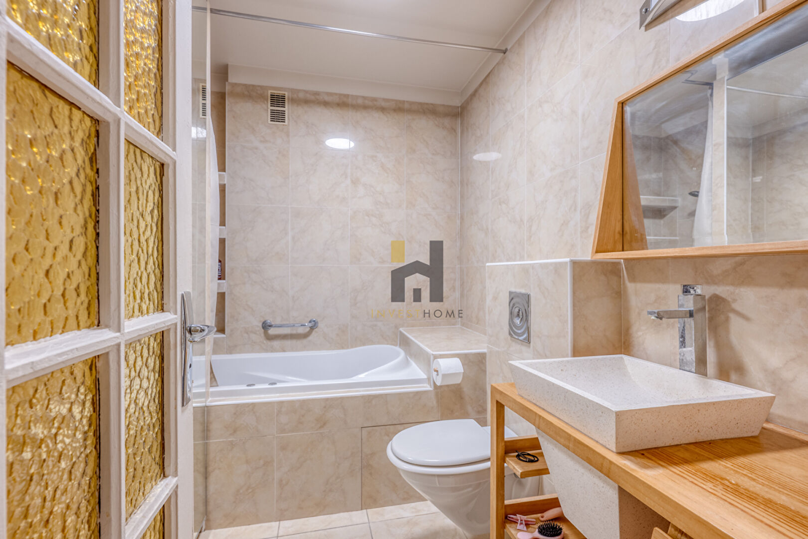 -Une salle de bain avec baignoire, fonctionnelle et agréable.