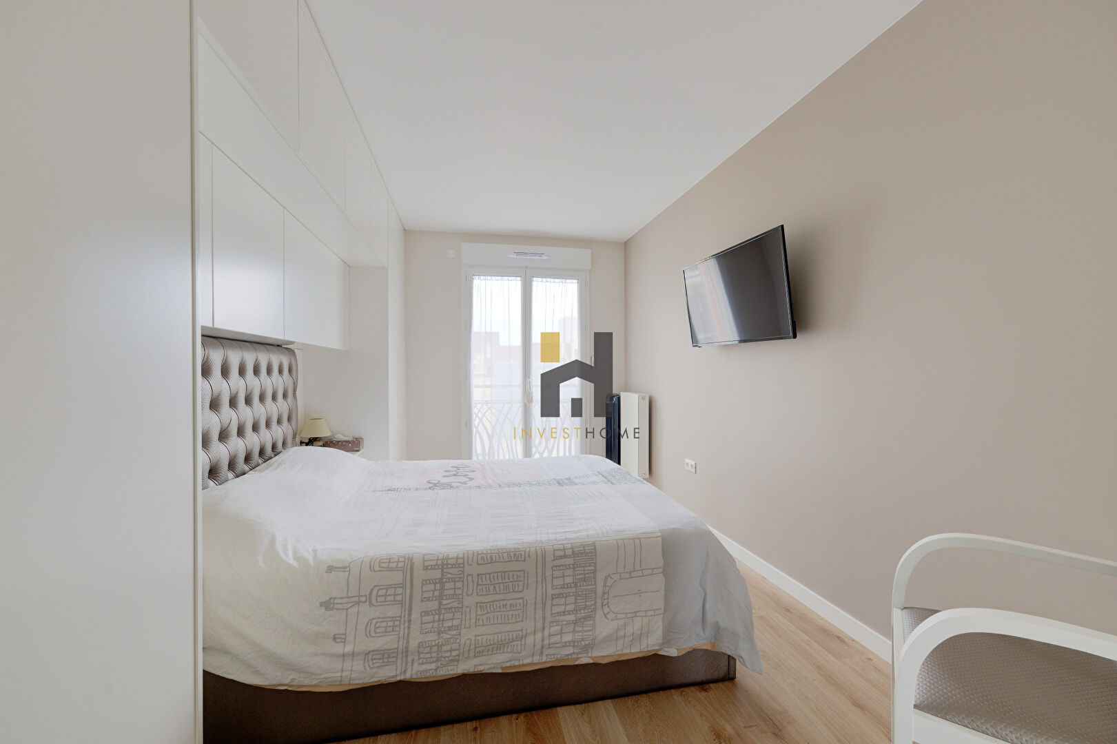 L’espace nuit propose deux chambres confortables, dont une chambre parentale avec dressing aménagé sur mesure, offrant un confort quotidien rare. Une salle de bains moderne ainsi que des rangements optimisés complètent l’ensemble.