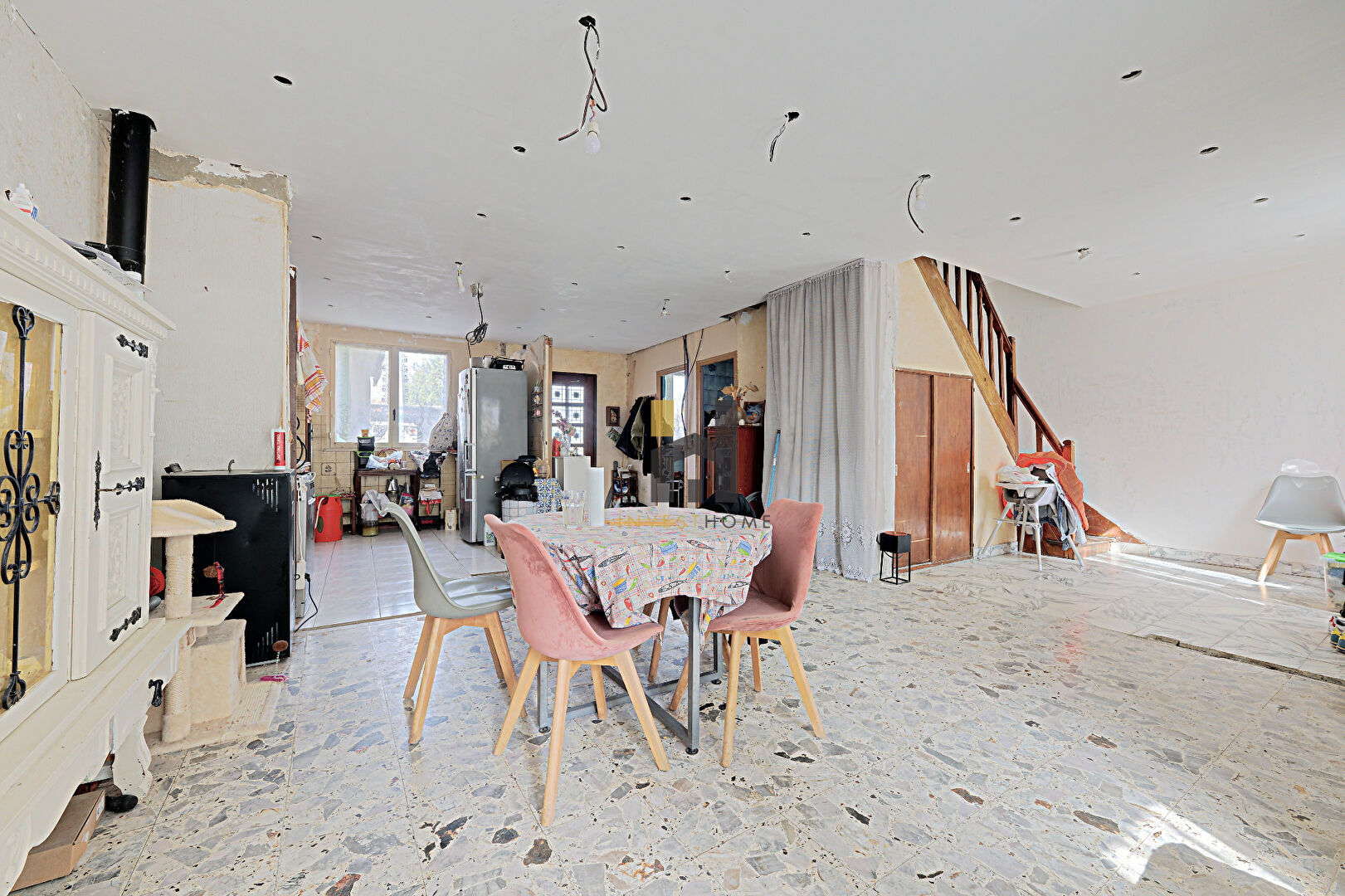Le rez-de-chaussée nécessite des travaux, vous permettant de repenser entièrement les espaces selon vos envies. A l’étage, vous découvrirez 4 chambres ainsi qu’une salle d’eau, idéales pour accueillir une famille.